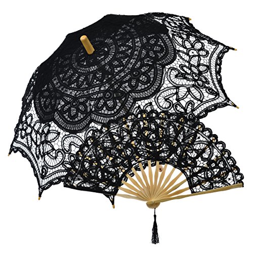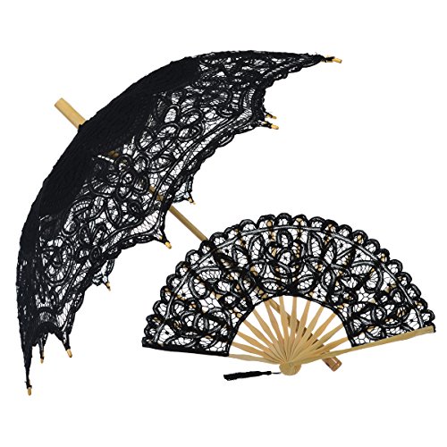 -. Brand : Remedios -. ClothingSize : onesize -. Department : womens -. Feature : Made of pure cotton fabric,NOT Waterproof / Parasol length:25.6"(65cm)when closed,diameter:30"-31.5"(76-80cm)when open / Fan length:28cm(11inch)when closed / The umbrella has wood stem and handle with metal rib / The bamboo pure cotton embroidery fan with voile fabric and tassel -. Model : LWUSHSSZ160007 -. ProductGroup : Apparel -. ProductTypeName : LAGE -. Size : onesize -. Title : Remedios Handmade Lace Parasol Umbrella Hand Fan Set for Wedding Bridal