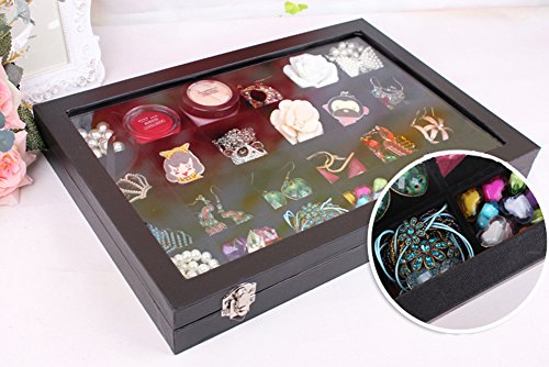 Lid & Lock: Features a clear glass lid that enables clear display of your stored jewelries while keeping them dust-free. Complete with 2 integrated safety locks for added security.
