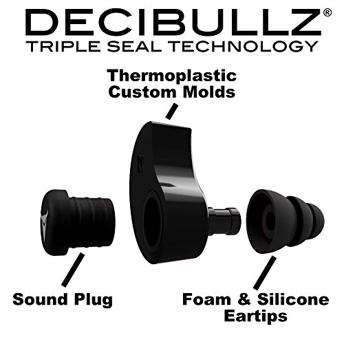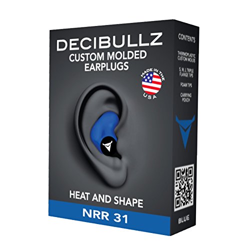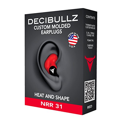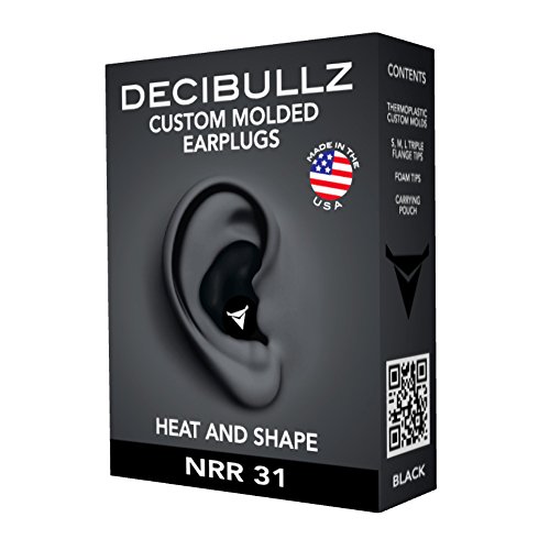 Decibullz Custom Molded Earplugs are easily and quickly fitted to the exact shape of your ears. This creates a perfect fitting earplug that will never hurt, never fall out and provide superior noise isolation. Simply heat the Decibullz thermoplastic molds in hot water, let them cool for a bit, and shape them to your ears. That's it! If you don't get the perfect fit the first time Decibullz are the only custom earplugs that are re-moldable. Decibullz are made in the USA. Included: Two Decibullz Thermoplastic Custom Molds, Three Sets of Triple Flange Tips S, M, L, One Set of Max Protect Foam Tips, Earplug Carrying Pouch with Decibullz LogoFeature