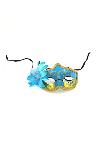 -. Feature : Blue and gold hard plastic mask. / Black satin tie. / Left side blue feather and flower.