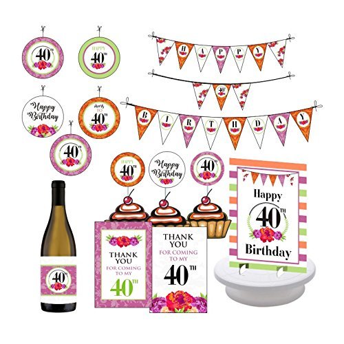 40th Birthday Party Decorations. 40th Birthday Supplies. Celebrate 40. Forty and Fabulous. Includes Champagne Wrapper, Centerpieces, Bunting...