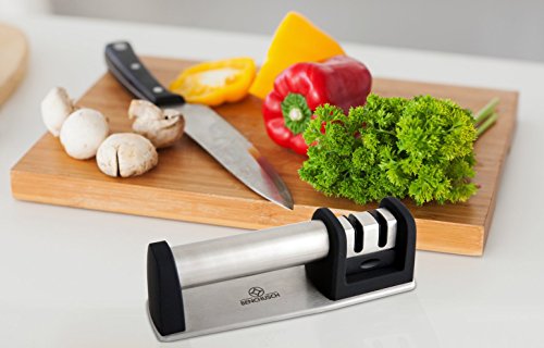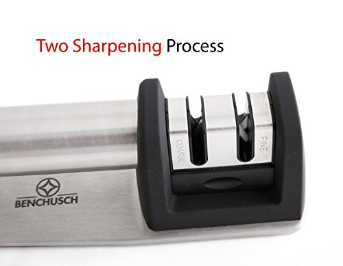 SAY GOODBYE TO DULL KNIVES – Dull knives are a nightmare for professional and home chefs! They can make your life so much harder! Blunt knives can cause damage to your food as well as put you in danger of injuries! Here’s the ideal solution! The Benchusch two-stage knife sharpener is exactly what you need to effortlessly sharpen every kitchen knife!