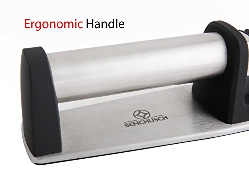 ELEGANT & ERGONOMIC DESIGN – The Benchusch exclusive knife sharpener will add a touch of elegance and classy design to your countertop. Due to its compact and lightweight design, it’s a great space-saving solution! Plus, its ergonomic handle and heavy-duty, non-slip rubber base will make knife sharpening fun, safe and effortless!