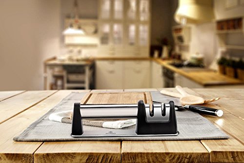 EASY TO USE ON EVERY KNIFE – Make sure that your knives are sharp and polished by choosing our sleek and easy to use universal knife sharpener! Not only will it perfectly sharpen every kitchen knife you own, it will also make it seem as easy as slicing through butter! Why waste precious time and effort, when you can have the easiest and most efficient sharpening system?