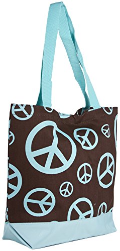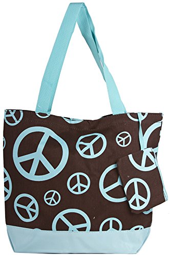 (scarlettsbags)/Accessories/Luggage, Bags Travel/DIRECT FROM USA/Ever Moda Brown Blue Peace Sign Tote Bag, Large 17-inch