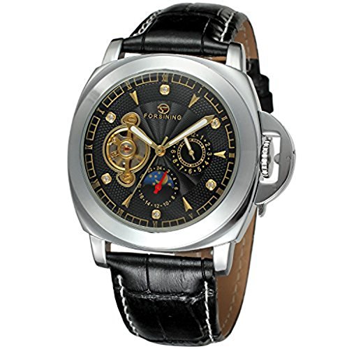 -. Title : GuTe出品 腕時計 メンズ 自動巻き トゥールビョン 革バンド ムーンフェイス ユニーク 機械式 ブラック