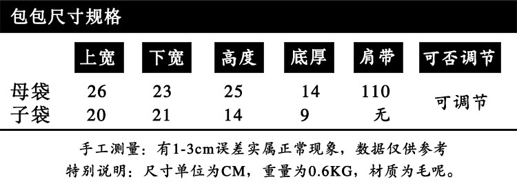 宽肩带斜挎包女新款时尚毛呢子母水桶包冬季时尚手提单肩包