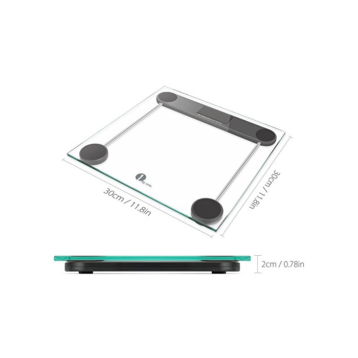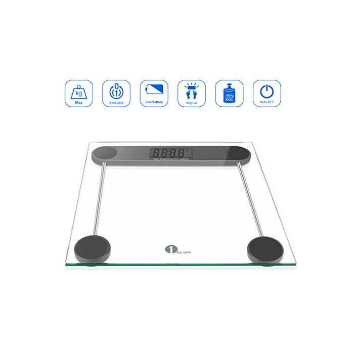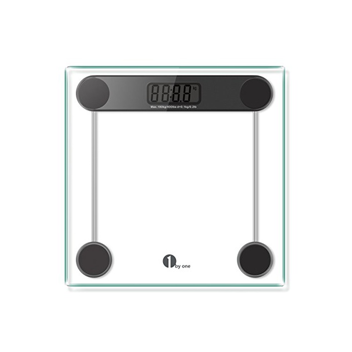 1byone 디지탈 체중계 바디 스케일 계량 범위180kg까지 심플한 디자인 투명 유리 설계