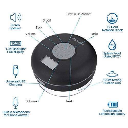 Abazar - Bluetooth Suction Shower Speaker ,Bathroom Music Radio Player -Matte Black