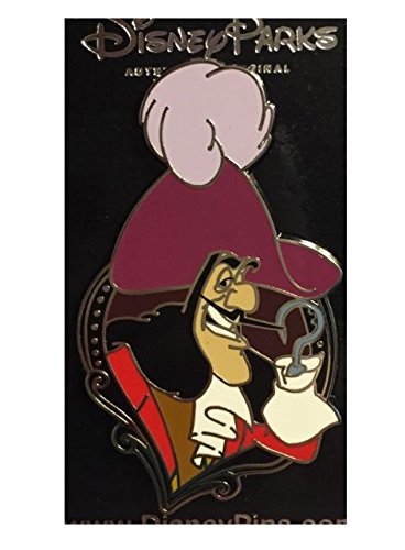 Studio : Disney Publisher : Disney Binding : Apparel Product Description Open Edition Villain pin featuring Captain Hook from the Peter Pan movies. Captain Hook is shown as an upper torso image, holding his hook hand up near his face. Pin has a dark brown background. He is within a black frame outline. 0