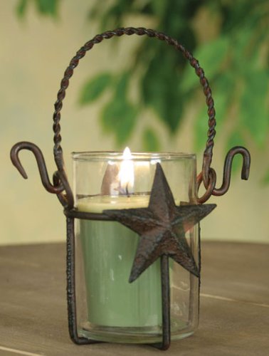 Primitive Star Candle Holder Rustic Metal with Glass Votive Candle Holder