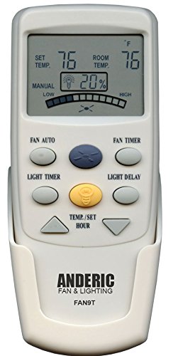 100% compatibility guarantee. Anderic FAN9T with FAN TIMER. Will do light dimming. This remote operates REVERSE. Comes with wall mount holder. Note: To change from C to F, hold down the TEMP UP and TEMP DOWN buttons simultaneously for 3 seconds. WARNING ABOUT: if your original remote's model number starts with "CHQ" (located engraved on the back of your original remote) then you will need to purchase the Anderic RR7096T with a yellow light button (even though yours has the may have a green light button). L3HFAN-9T with FAN TIMER button. Works with deck style receiver. Will do light dimming. Comes with Wall mount holder.Feature