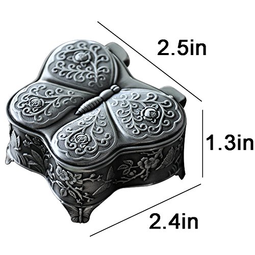 Girl's Metal Jewelry Box Butterfly European Vintga Small Jewelry Holder Flower Carved