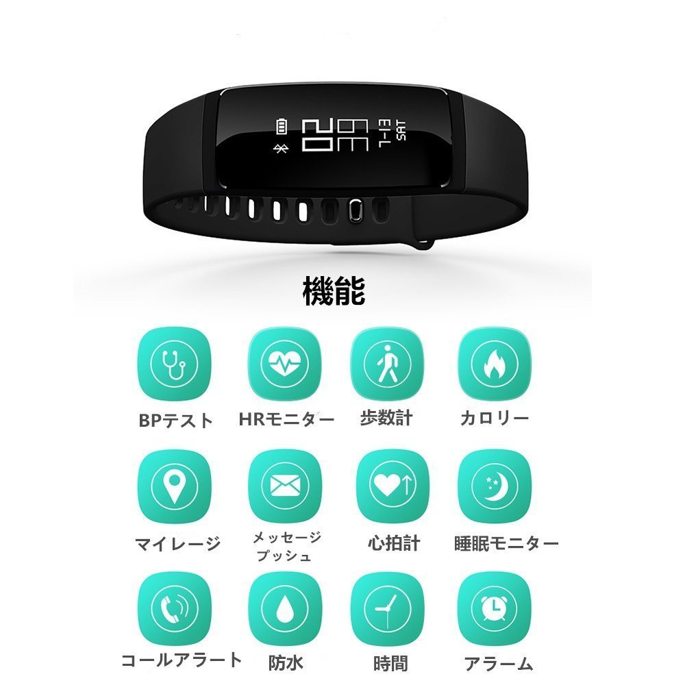 Heart rate monitor, blood pressure measurement, activity meter, movement route, automatic attention of sitting tendency, sleep monitor, application incoming notification such as telephone, alarm, data synchronization, data analysis.