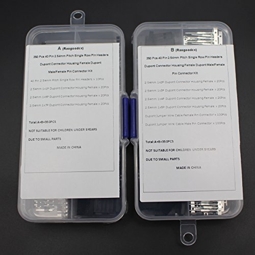 Raogoodcx 350 Pcs 40 Pin 2.54mm Pitch Single Row Pin Headers Dupont Connector Housing Female Dupont Male/Female Pin Connector Kit