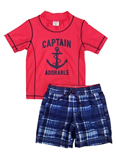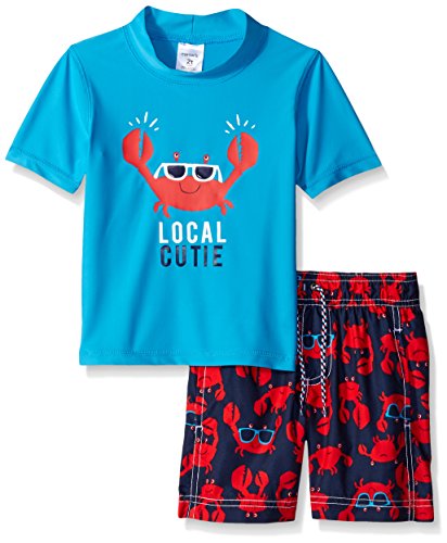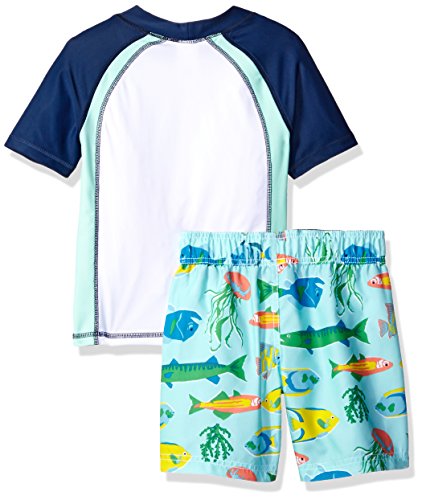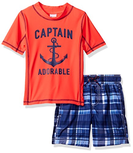 Carter's Little Boys' 2 Piece Caribbean Explorer Rash Guard Set, Navy/White, 5