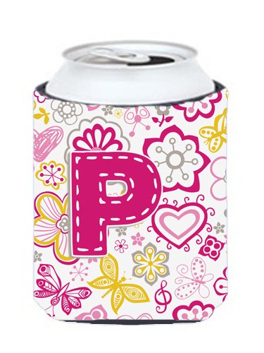 Letter P Flowers and Butterflies Pink Can or Bottle Hugger CJ2005-PCC