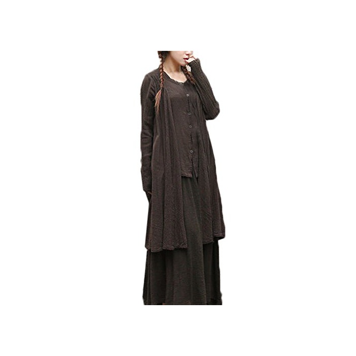원본상품명: ZANZEA レディ?ス 秋 冬 カジュアル レイヤ?ド ゆる リネン 長袖 不規則? ボタン トップス ボヘミアス風 マキシ丈 ロングワンピ?ス スカ?ト ブラウン M