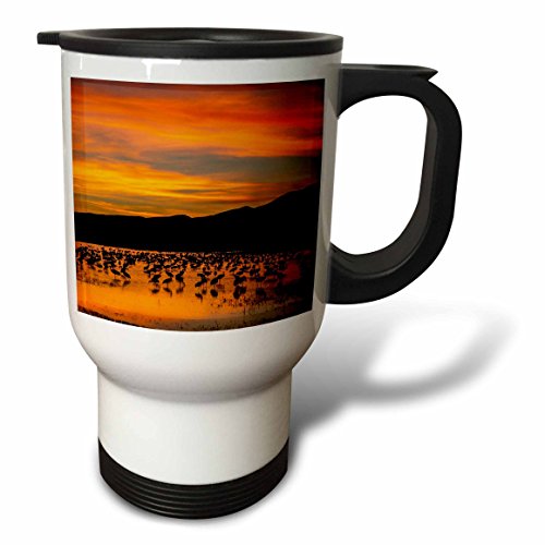 3dRose tm_205480_1 USA, New Mexico, Bosque del Apache NWR Sandhill cranes at sunset Travel Mug, 14 oz, Stainless Steel, White