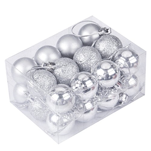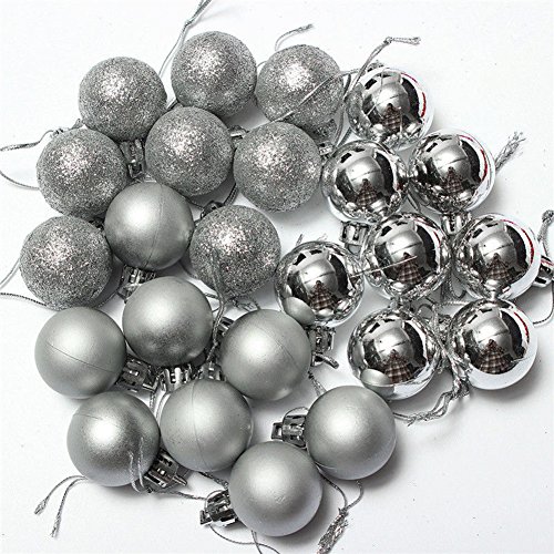 24Pcs Christmas Tree Decoration Ball Pendants Holiday Party Christmas Tree Ornaments (Silver)