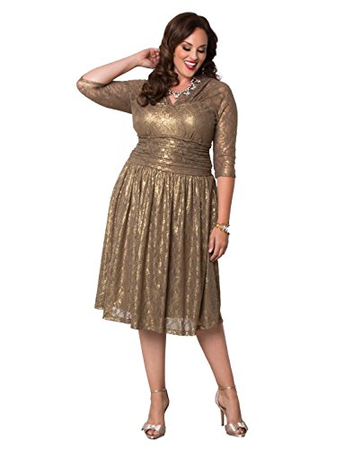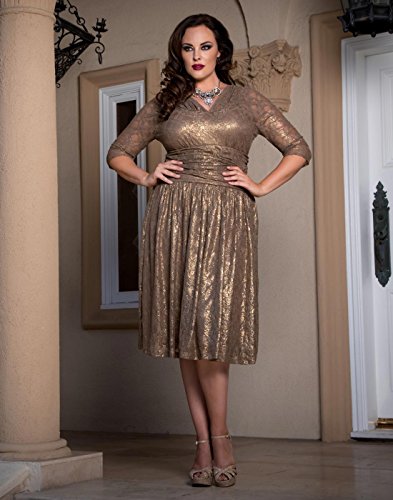 Kiyonna Women's Plus Size Limited Edition Metallic Maven Lace Dress 0X Maple Shimmer