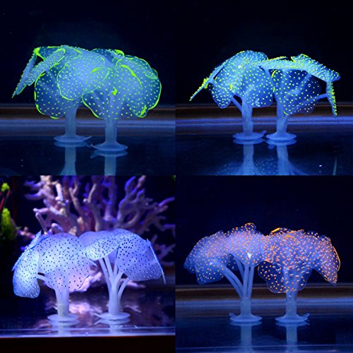 Glowing Effect Artificial Coral Plastic Leaves Flowers Accent Underwater Plants Decorative Aquarium Aquascaping Tank Ornament