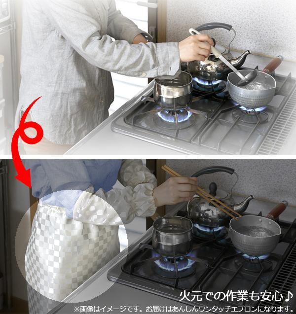 | 炎が燃え広がりにくい生地を使用したワンタッチエプロン!! |