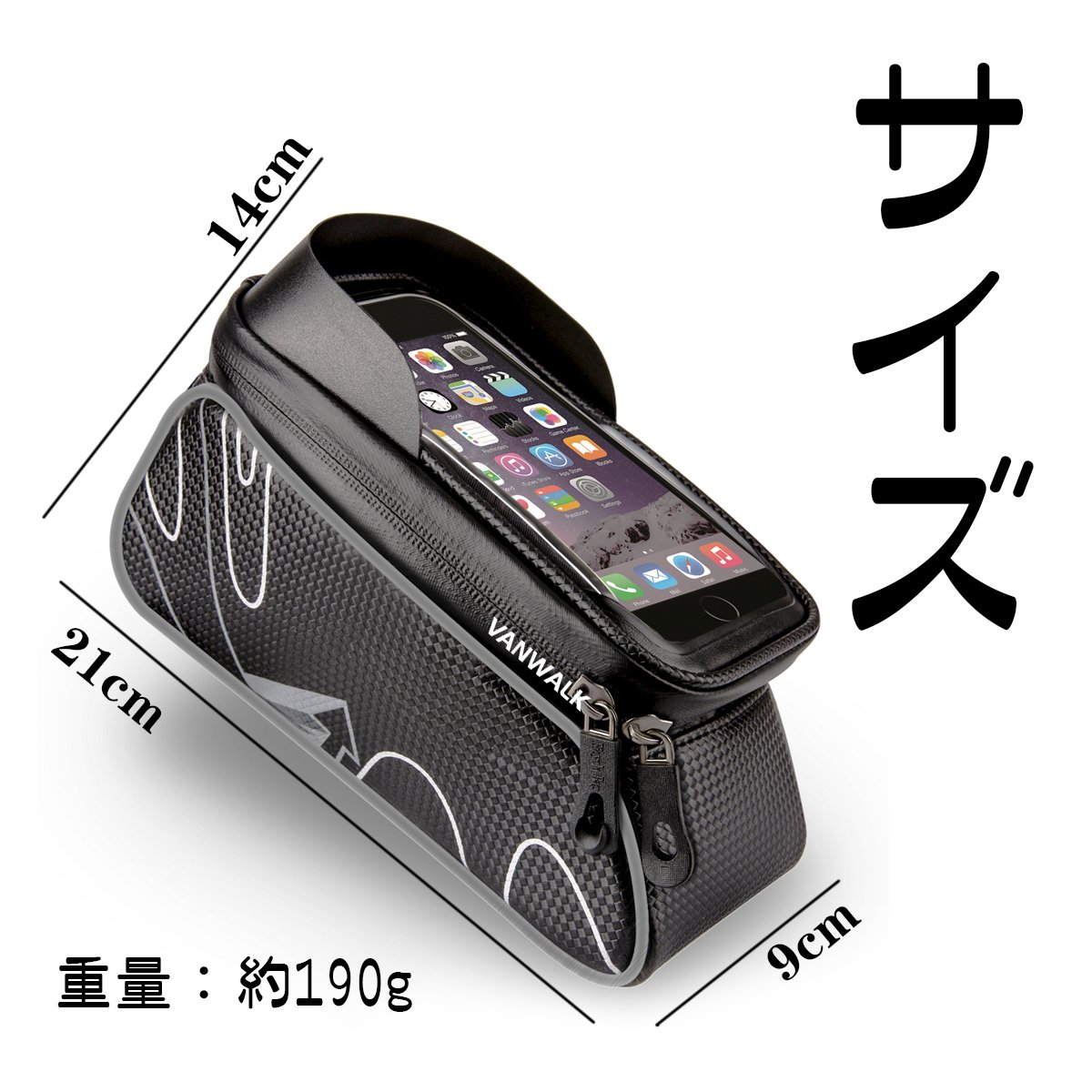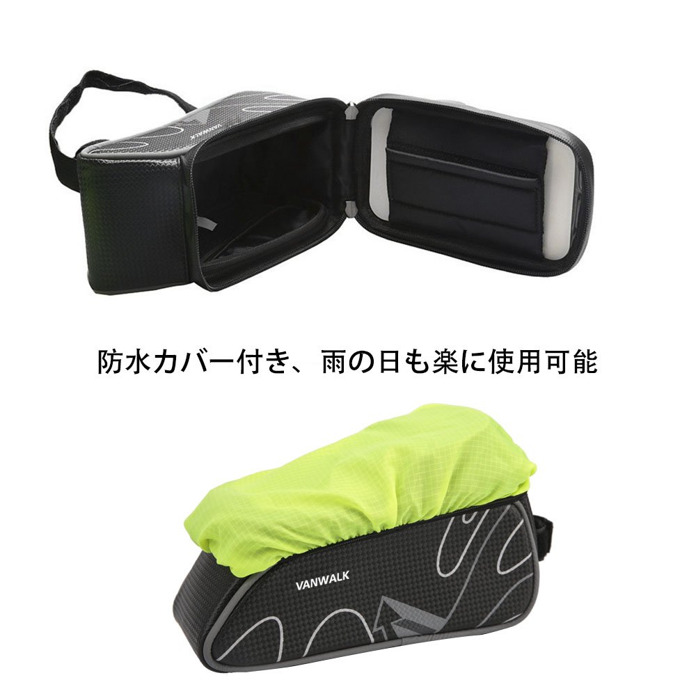 Top tube bag for large capacity bicycle, touch screen cell phone pocket of 6.0 inches or less.