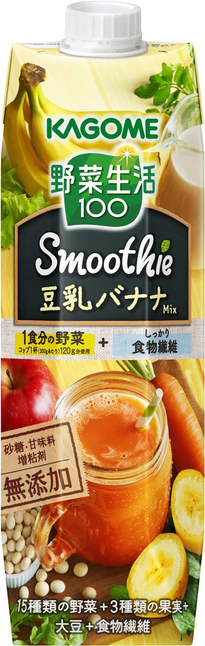 原材料:野菜(にんじん、さつまいも、ケール、ほうれん草、アスパラガス、クレソン、パセリ、かぼちゃ、レタス、キャベツ、ビート、だいこん、はくさい、たまねぎ、セロリ)、果実(りんご、バナナ、レモン)、大豆、食物繊維、寒天、豆乳/pH調整剤、香料、乳化剤、ビタミンC 内容量:1000g×6本 カロリー:(20