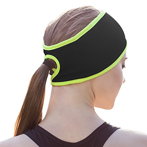 -. Title : Your Choice Women Ponytail Headband Pony Tail Hole Running Yoga Ear Warmers Headband Sports Outdoor Sweatband Headbands Polyester Fleece Black with Yellow Fluorescent Contour
