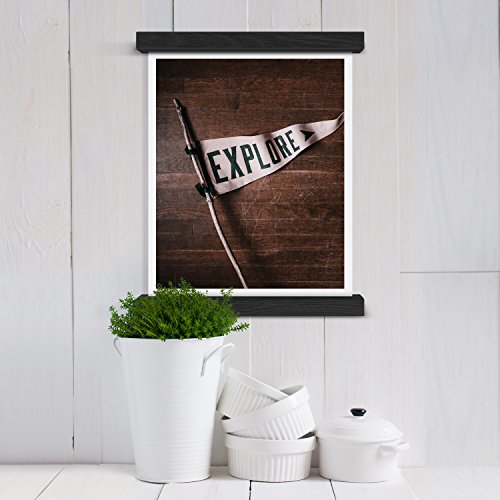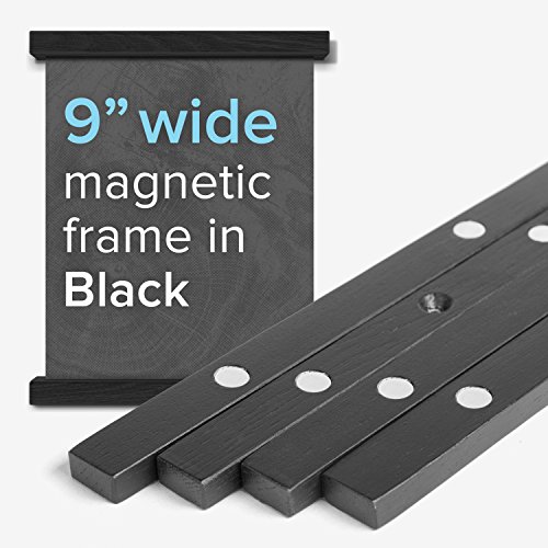 9" Wide Magnetic Poster Frame Hanger in Black – Solid Wood and Magnets Strong Enough to Hang ANY Length