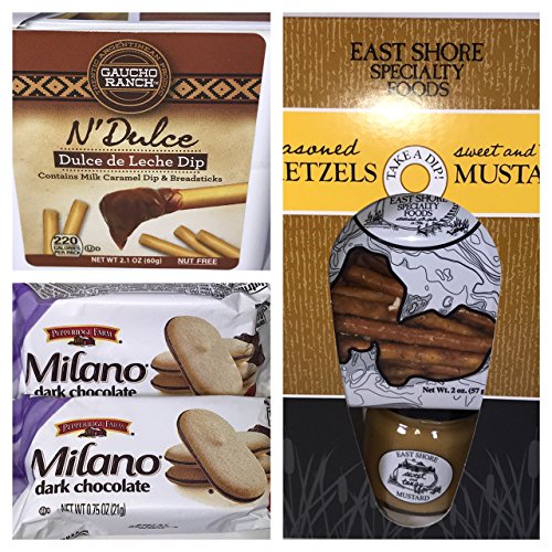 - 17 Items in Each Box -- Including Two .75 oz Milano Dark Chocolate Cookies, Roobi Slipper Tea by B. Fuller's Mortar & Pestle (a Mint Blend Beautifully Packed in a 8.5" Glass Tube with Cork), East Shore Mini Snack Set (1. 4 oz Sweet & Tangy Mustard with 2 oz. Seasoned Pretzels), Project 7 Birthday Cake Gum, 2 "Happy Birthday" Gourmet Jelly Beans by Jelly Belly, and Salted Caramel Hot Cocoa by Fireside Coffee