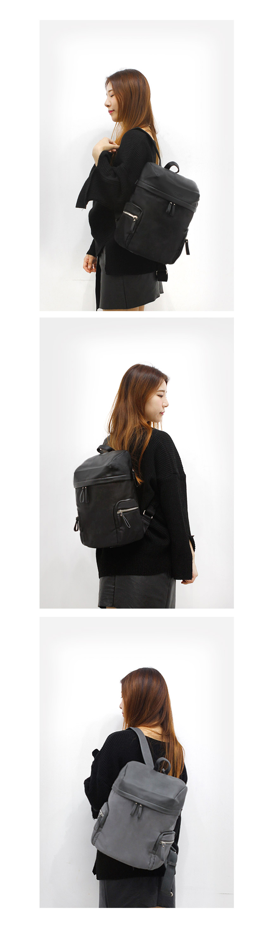 Stylish coordinated leather two-tone black gray female office worker recommended college student good backpack storage
