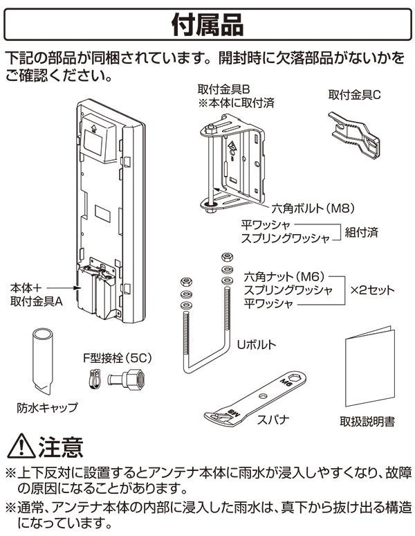※アンテナを屋根上などに設置する場合は、強度上の安全性確保のため、専門の技術者または、専門業者にご依頼ください。