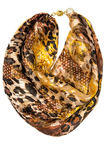 (Necklascarf)/Accessories/Cold Weather Accessories/DIRECT FROM USA/Necklascarf Women's Golds Browns Scarf w Magnet Clasp, Chiffon