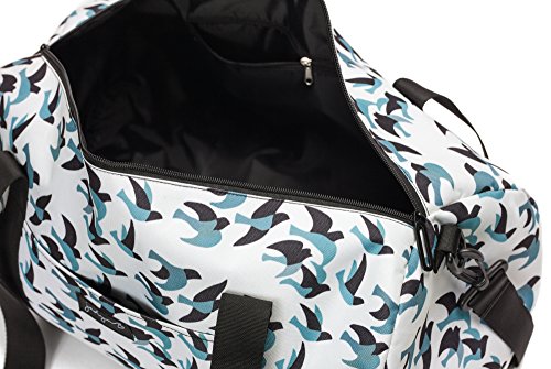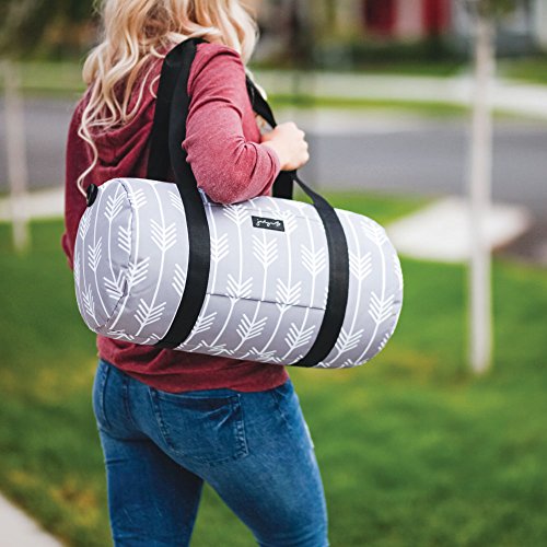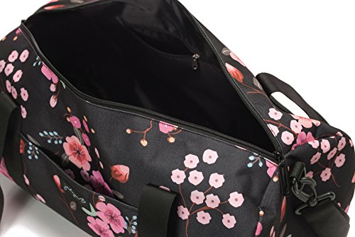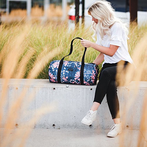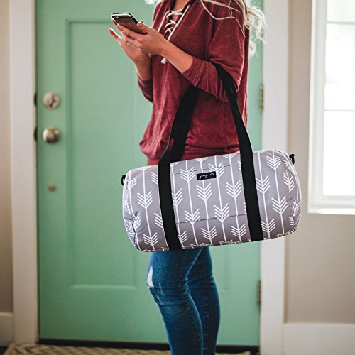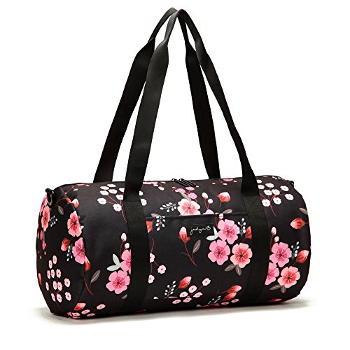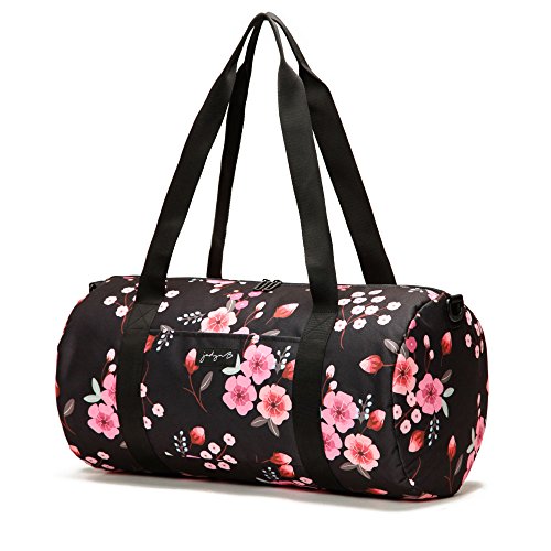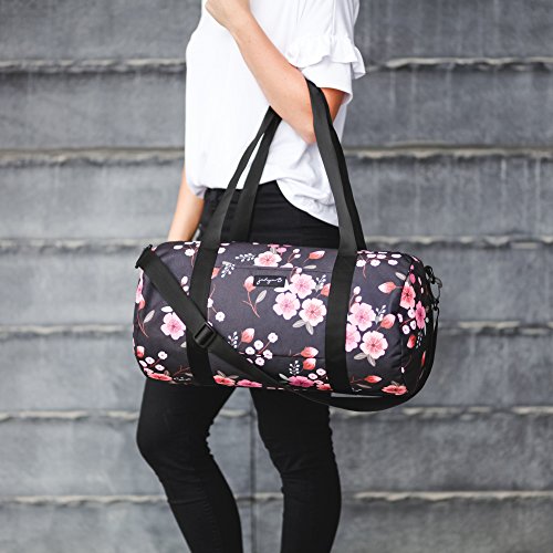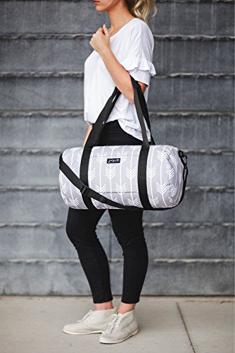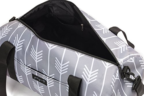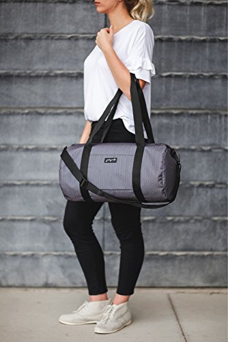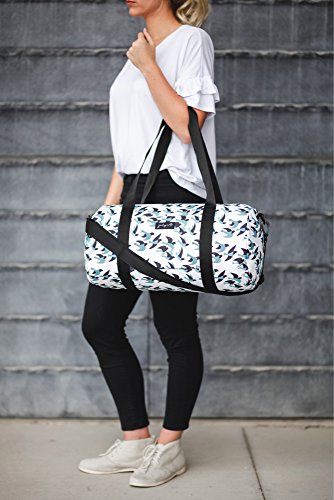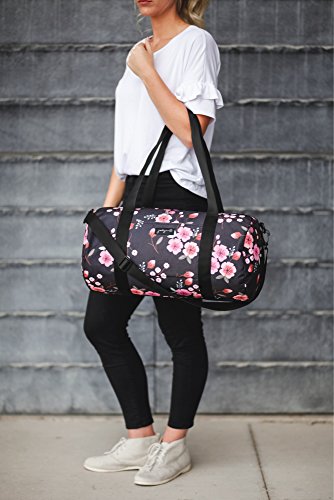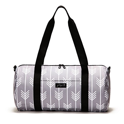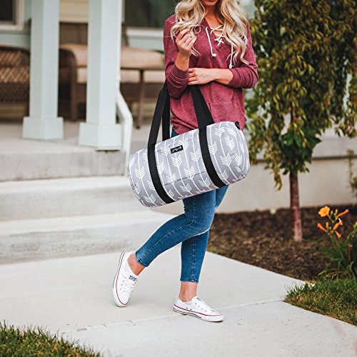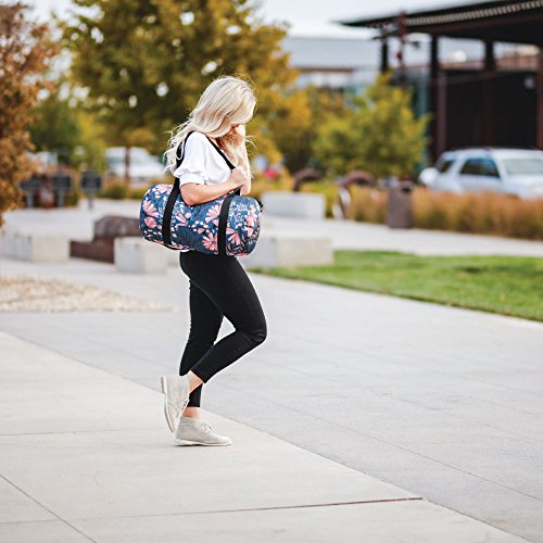 Product Description Jadyn B's Barrel Duffel Bag provides active lifestyles with exceptional durability and functionality while maintaining a feminine edge of beauty and style. The handles drop 13", allowing most women to carry the duffel on their shoulders. However, an adjustable shoulder strap is included for added support. The bag features a zip-enclosed inner pocket for toiletries and other essentials, and the front of the bag features an open, quick-access pocket for anything needed on the go. It is the perfect overnight travel bag or gym bag. Weight: 1 lb 2 oz. Dimensions: 19" x 10" x 10". 0
