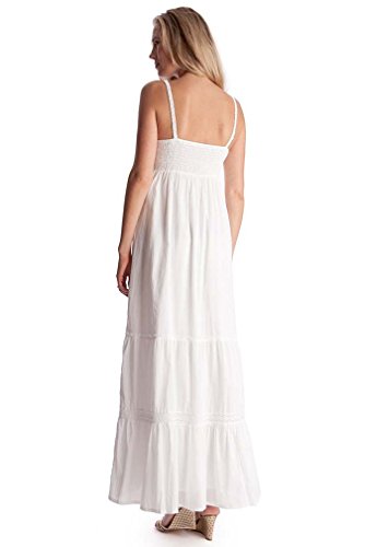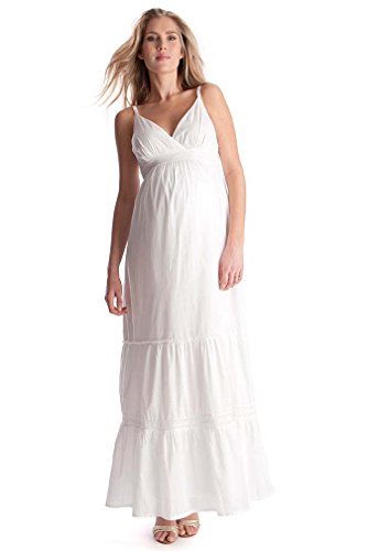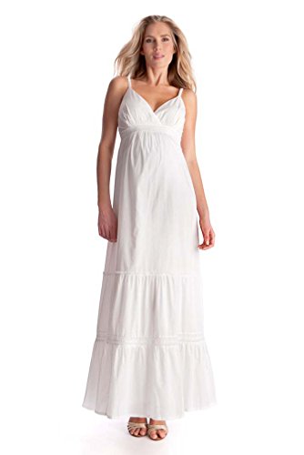 The Melody is a beautiful white maxi dress that is perfect for maternity photo shoots, beach vacation or even a casual wedding. Dress it down with a pair of flip flops for a cool beach look or for or dress it up with wedges and statement jewelry. This lace trimmed floor length dress features full coverage at the back and adjustable elasticated straps. 100% Cotton Voile Machine or hand wash cold/Hang to dryFeature