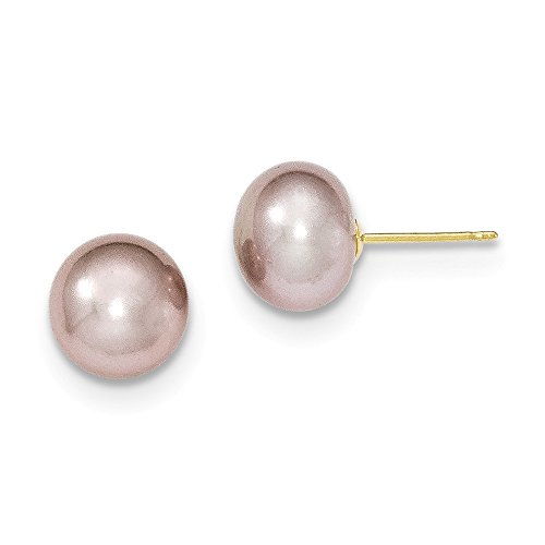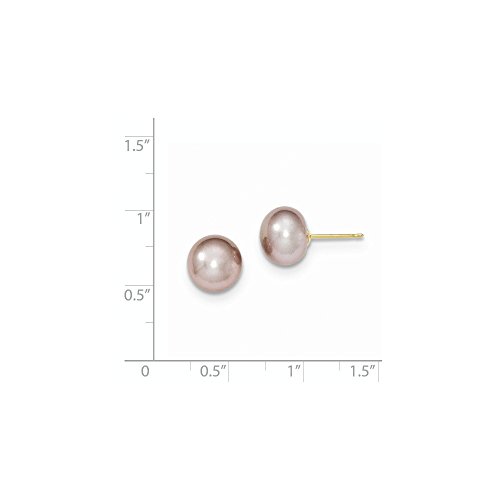 Solid 14k Yellow Gold 9-10mm Purple Button FW Cultured Pearl Stud Earrings