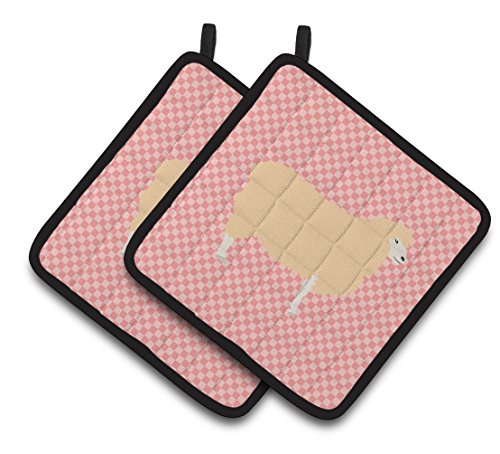 Caroline's Treasures BB7974PTHD English Leicester Longwool Sheep Pink Check Decorated Pot Holder, 7.5" x 7.5", Multicolor