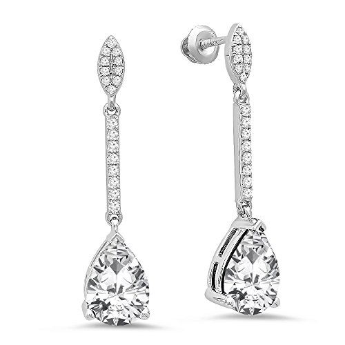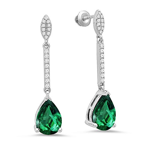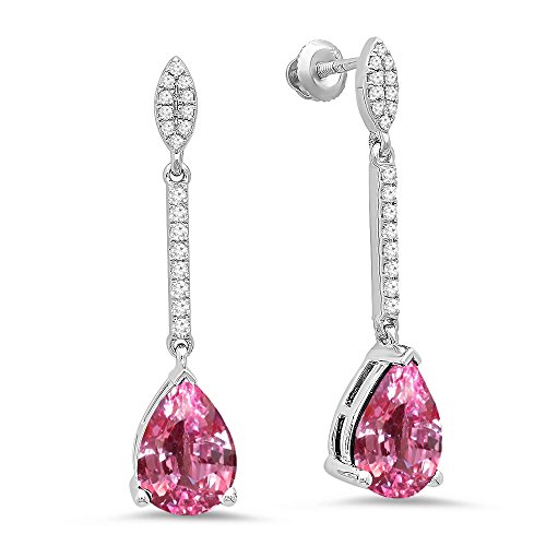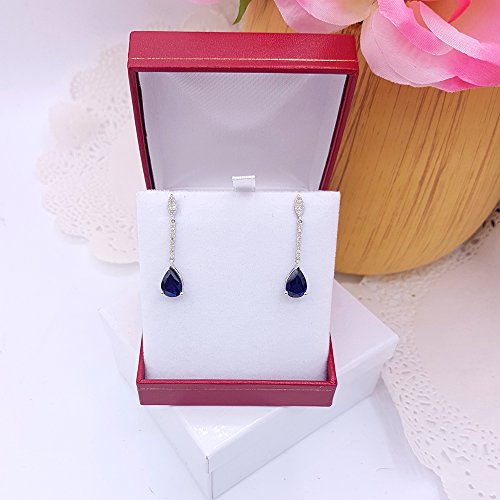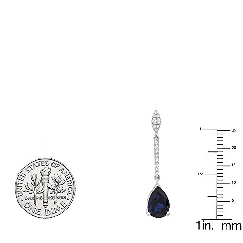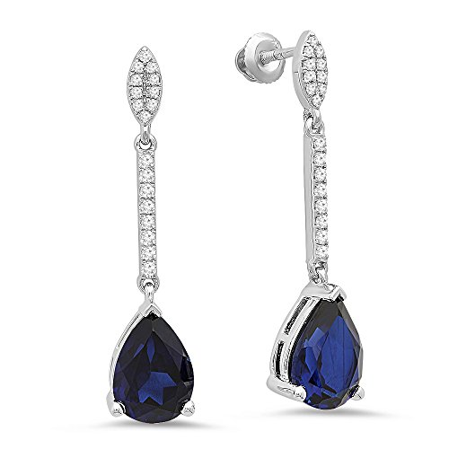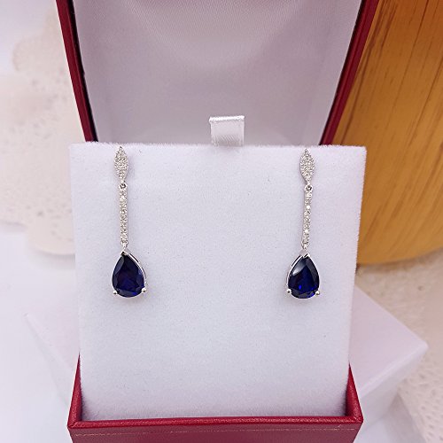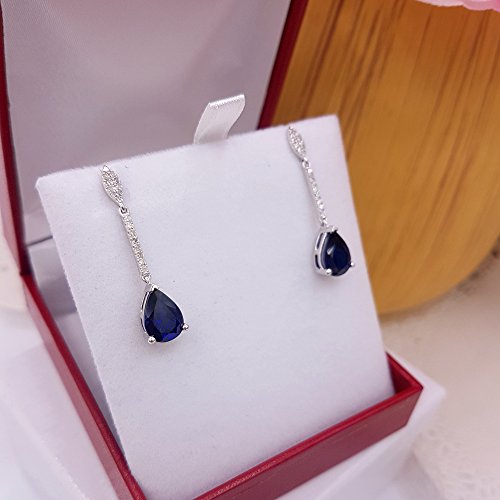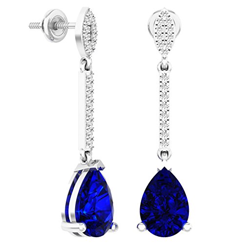 This lovely dangling drop earrings feature 10X7 MM each pear lab created blue sapphire & 0.20 ct. round white diamonds in prong-setting. Only diamonds are sparkling and 100% natural. All diamonds are Natural & non-treated, minimum diamond color is I-J & clarity is I2-I3. All our products with FREE gift box and 100% Satisfaction guarantee. SKU # K4333-10KWFeature