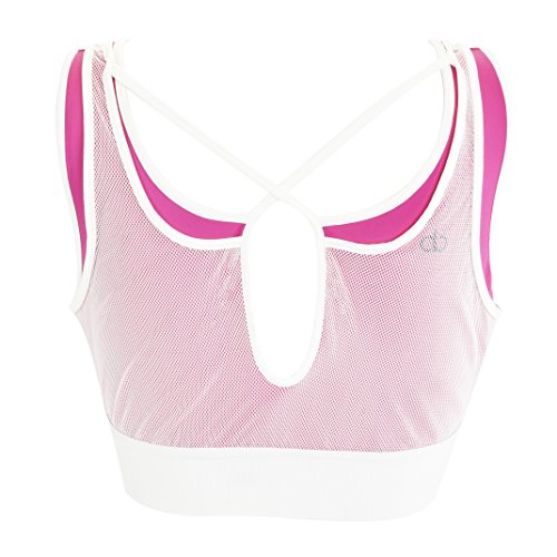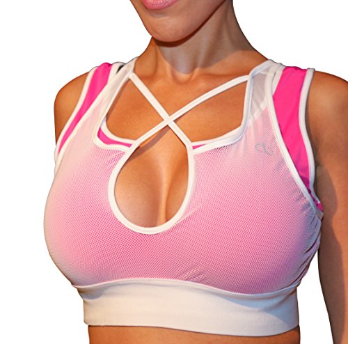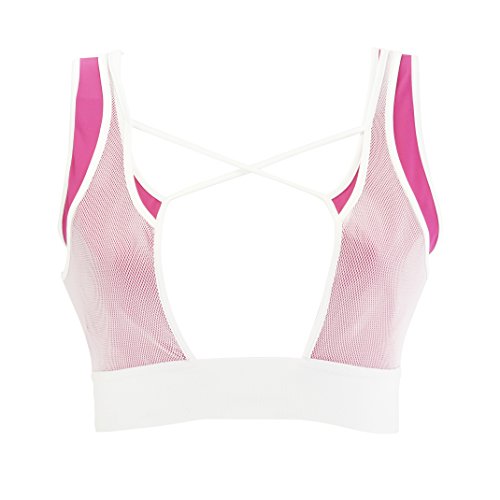 -. Binding : Apparel -. Brand : AB Butter -. Color : Pink White -. Department : womens -. Feature : Deep plunge sexy cleavage line. Each size fits waist size in inches S(32-35)M(35-37)L(37-39) / Mesh outer layer and polyester spandex layer underneath with a relaxed fit, no underwire and no padding. Light-support and Super stretchy fits many cup sizes. Does not run small. / Soft Comfortable 2 inch wide Elastic Waist Band with criss cross straps a keyhole cutout / Beautifully designed to make you look your best during a workout or casually on the go while getting so many compliments. / 83% Polyester 17%Spandex super soft, comfortable and flattering fabric -. IsAdultProduct : 0 -. PackageQuantity : 1 -. ProductGroup : Apparel -. ProductTypeName : SHIRT -. Title : AB Butter Activewear Women's Deep Plunge Lacey Mesh Sports Bra for Fitness Gym Workout Exercise Yoga