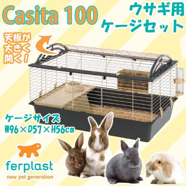 | 天面が大きく開閉するのでお手入れ簡単!!エサ入れ、水のみ、ハウス、牧草入れが付いたお得なセット♪ウサギだけでなく、モルモットの飼育にもお使いいただけます。 |