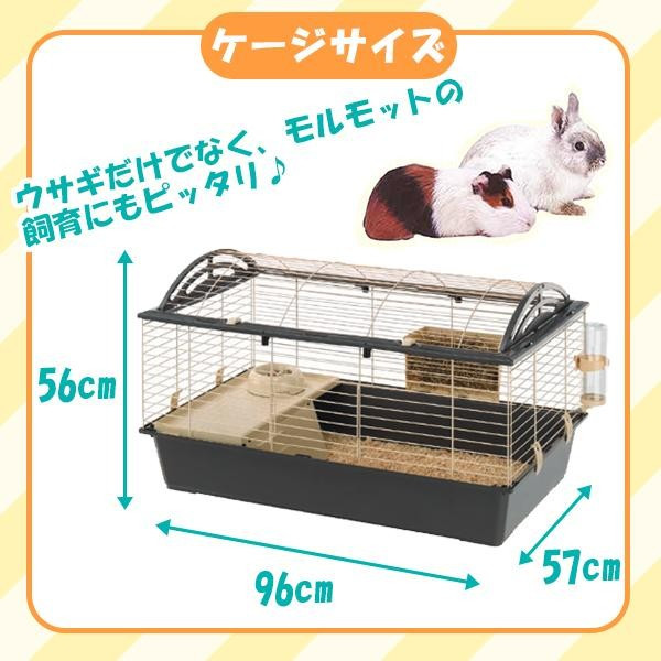 天面が大きく開閉するのでお手入れ簡単!!エサ入れ、水のみ、ハウス、牧草入れが付いたお得なセット♪ウサギだけでなく、モルモットの飼育にもお使いいただけます。 |