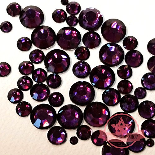 400 pcs 2mm - 6mm Resin Amethyst round Rhinestones Flatback Mix SIZE