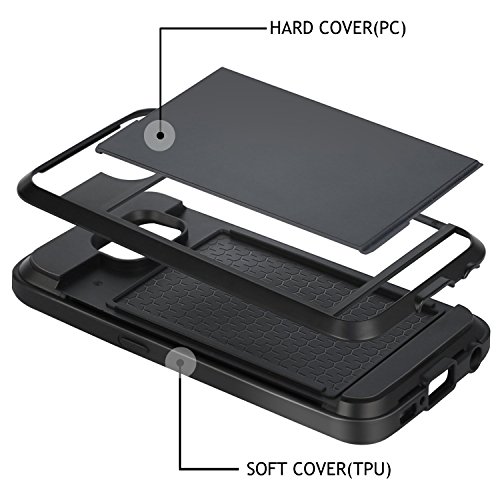 -. Feature : Sliding cards cabinet: Smooth sliding cover, super convenient when just need TWO cards around (ID/credit card/cash) / Strong yet slim, form fitting hard-shell construction with soft core inner shell / Lay-flat Screen Guard provides ultimate screen protection that covers all 4 corners / Solid hard PC Cover: provides smooth touch feeling, elegant appearance.Soft TPU inner layer: Easily to remove,without damaging or scratching the phone body. / Pecfect Fit: Compatible with Galaxy S6 100% fit. With precise cutting for all ports, camera and speaker, side button with Full cover protection