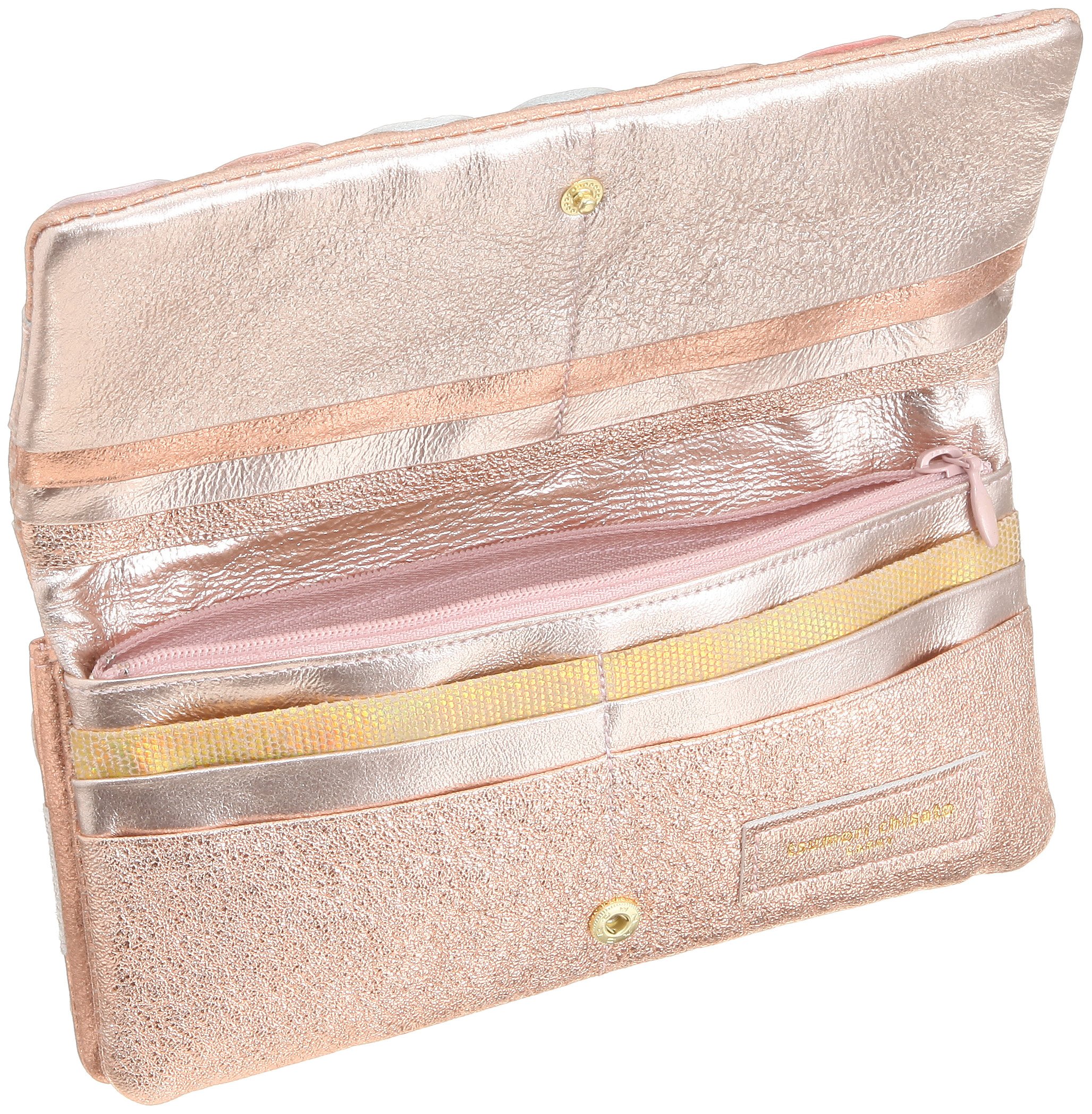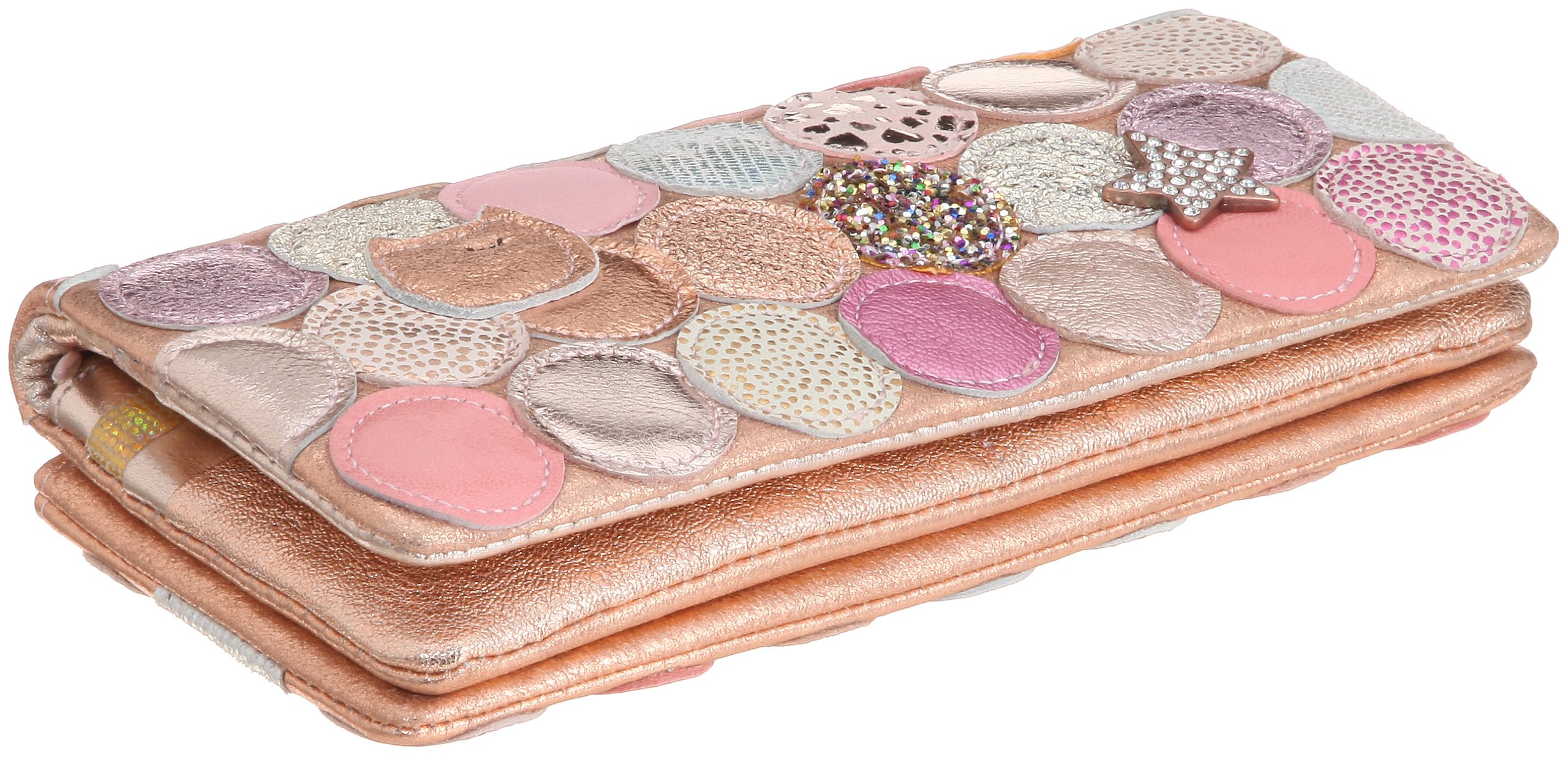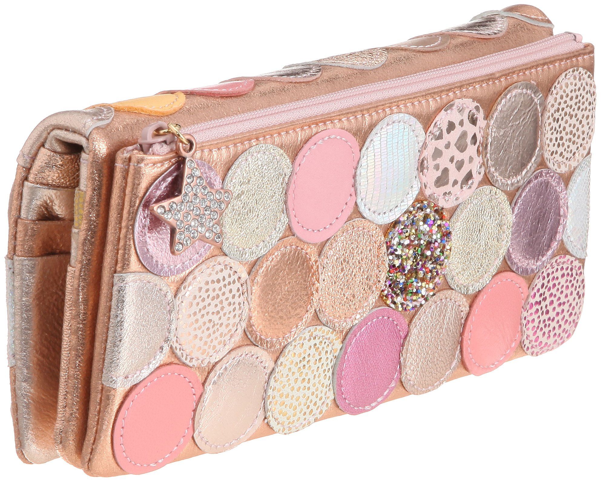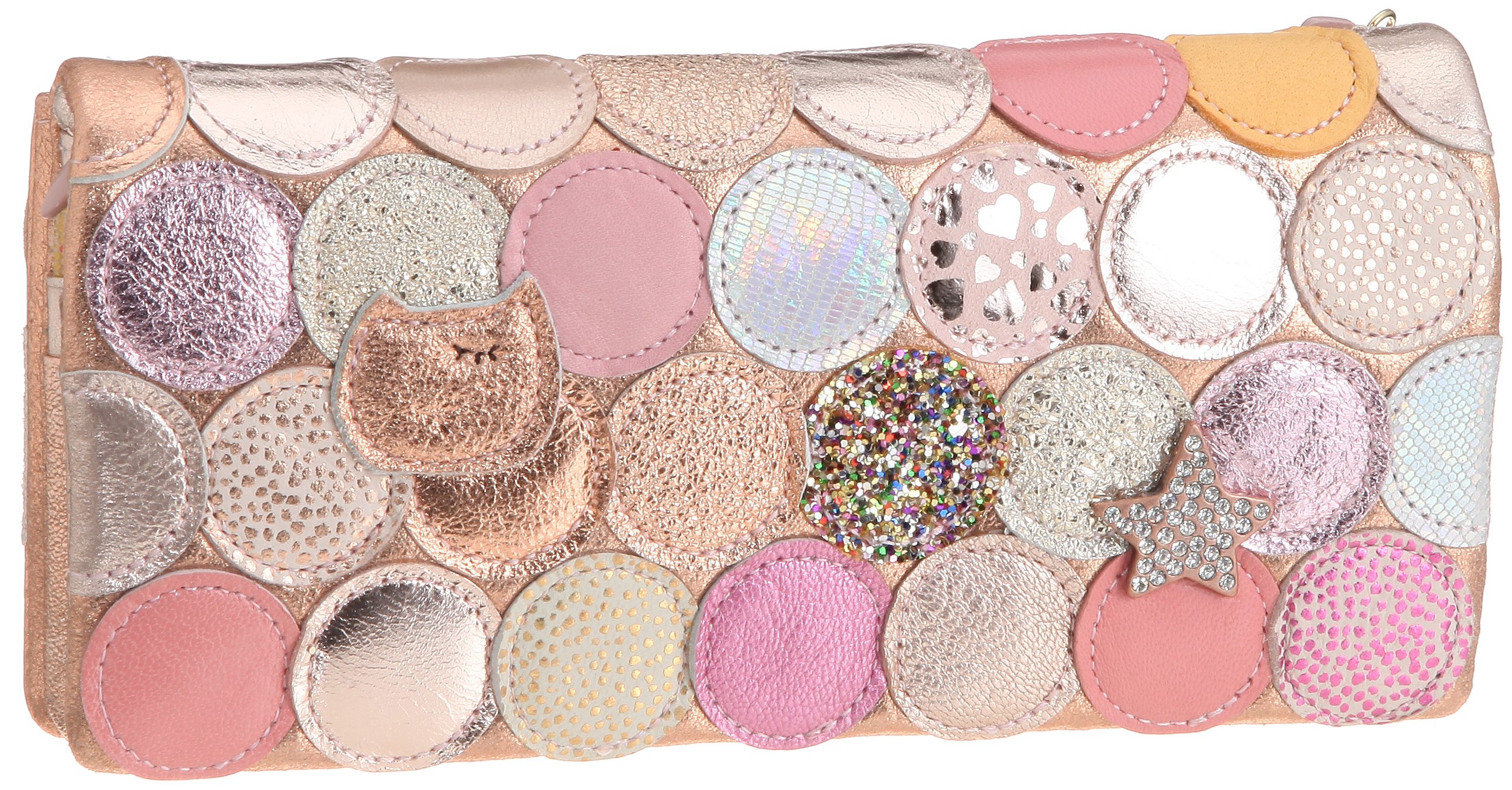 The metal dot patchwork casually concealed cats and star motifs casually, long wallet full of playfulness.