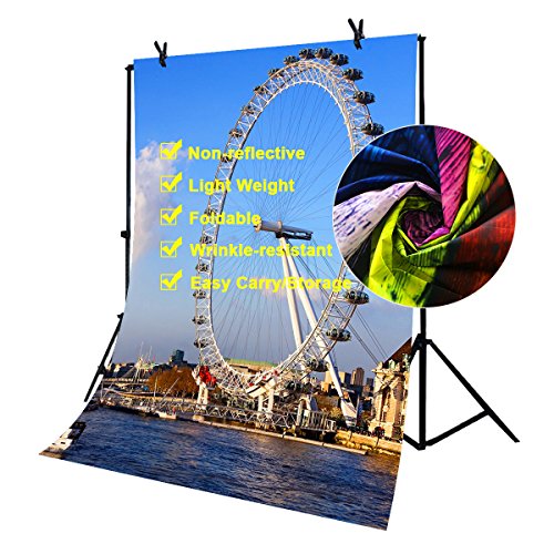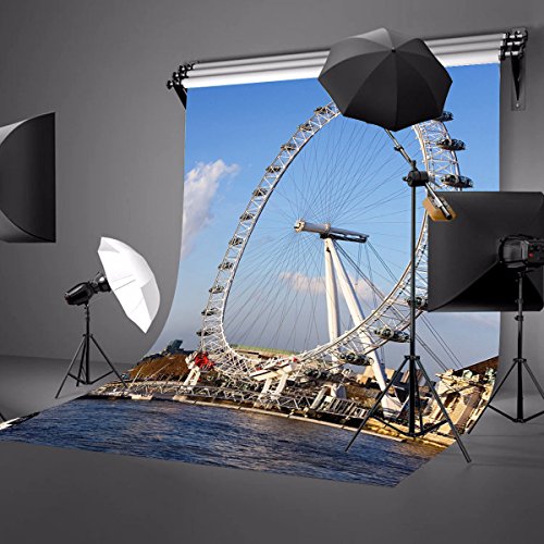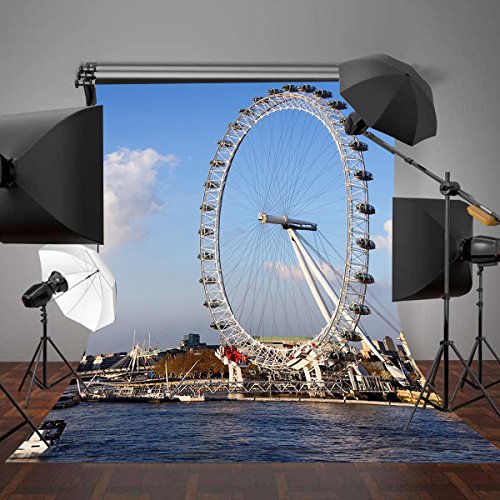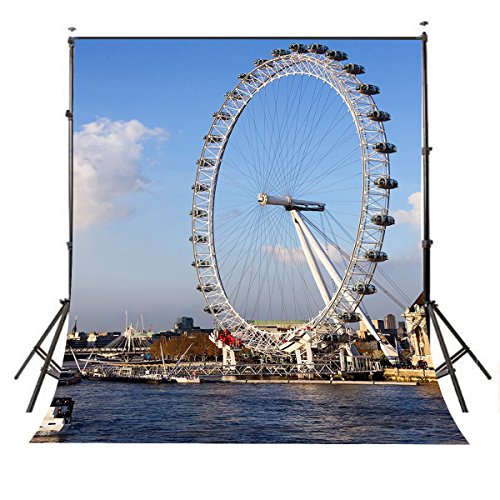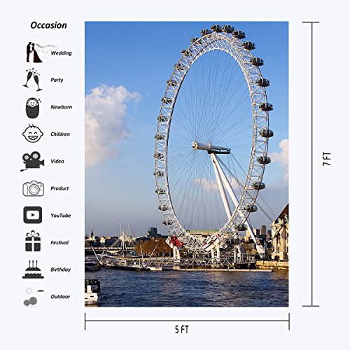 Lyly County 5×7ft 100% Polyester Blue Sky Thames River London Millennium Wheel Backdrop Studio Photography Props (Upgrade material ) LY006