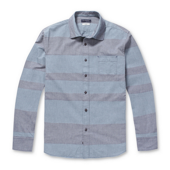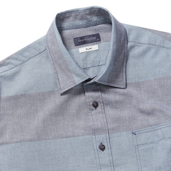 - 잔조직 투톤 블럭 디자인을 매치한 남성 셔츠.