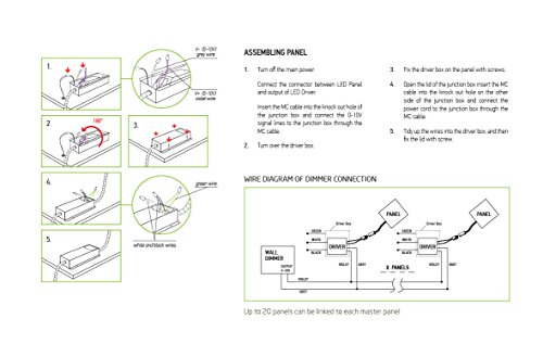 - FULLY DIMMABLE: high quality driver provides smooth 5-100% dimming (opposed to step dimming suggested for lower quality drivers that allows only a few dimming options (e.g. 25%-50%-75%-100%). The product uses a low-voltage 0-10V dimmer (manufacturer tested dimmers include: Lutron NFTV, Leviton IPL710 DLZ, Leviton IPL710 DL, Cooper SF10P-W). Please note: dimming is optional, if this feature is not required the dimming wires can simply be capped off and the light will function on/off.