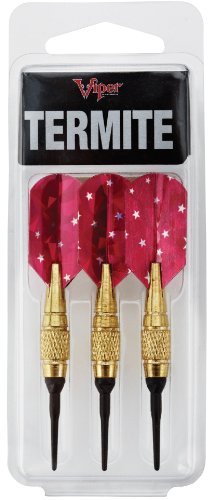 The Viper Termite Soft Tip Darts are only 3 long! This dart features a slim design for tight groupings and is knurled near the tip to prevent slipping. Flight slides into top of barrel, no shaft needed. This product comes as a 3 dart set. BARRELS: Brass barrel SHAFTS: None FLIGHTS: 1 set TIPS: 2BA WEIGHT: 4.5 grams
